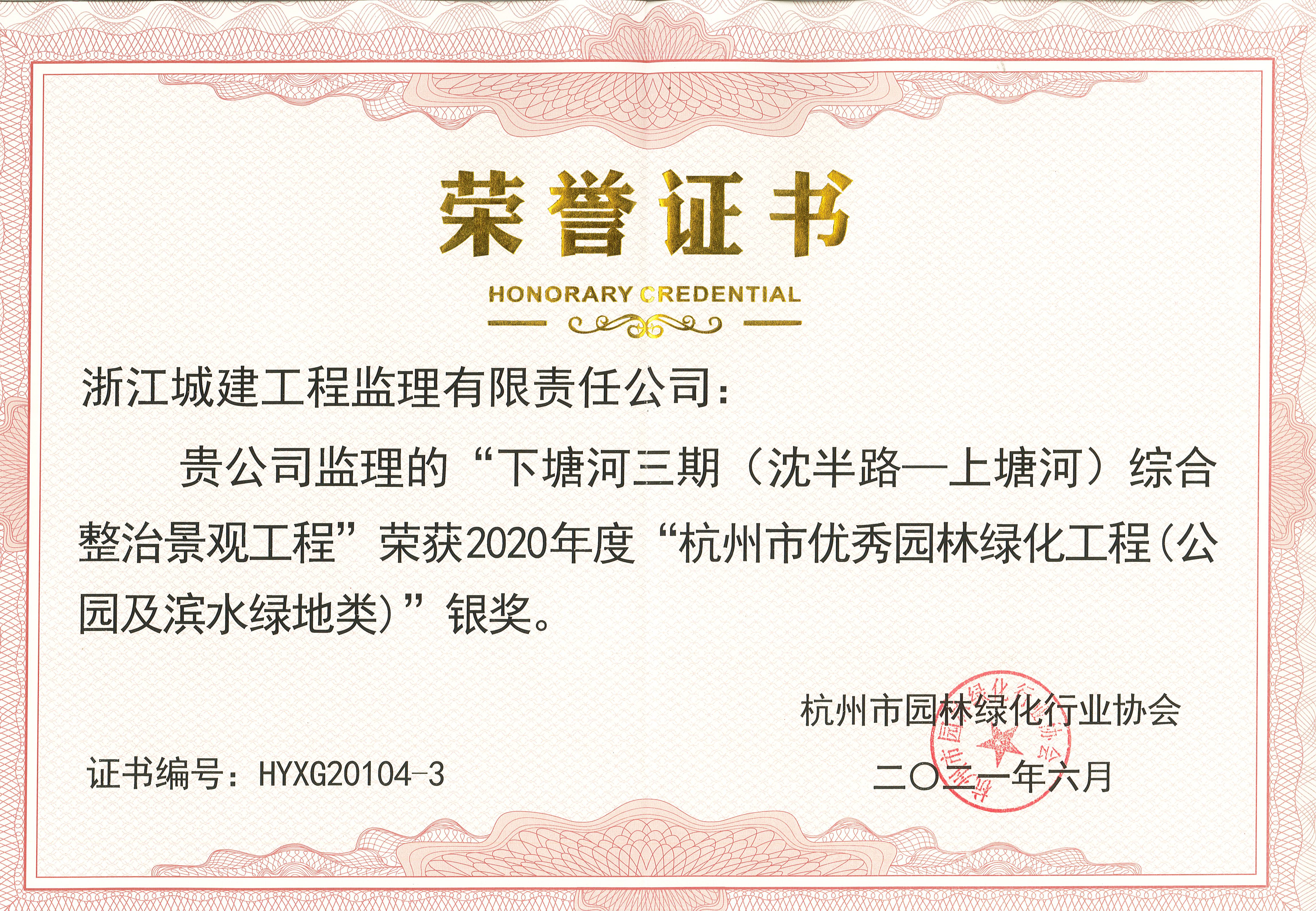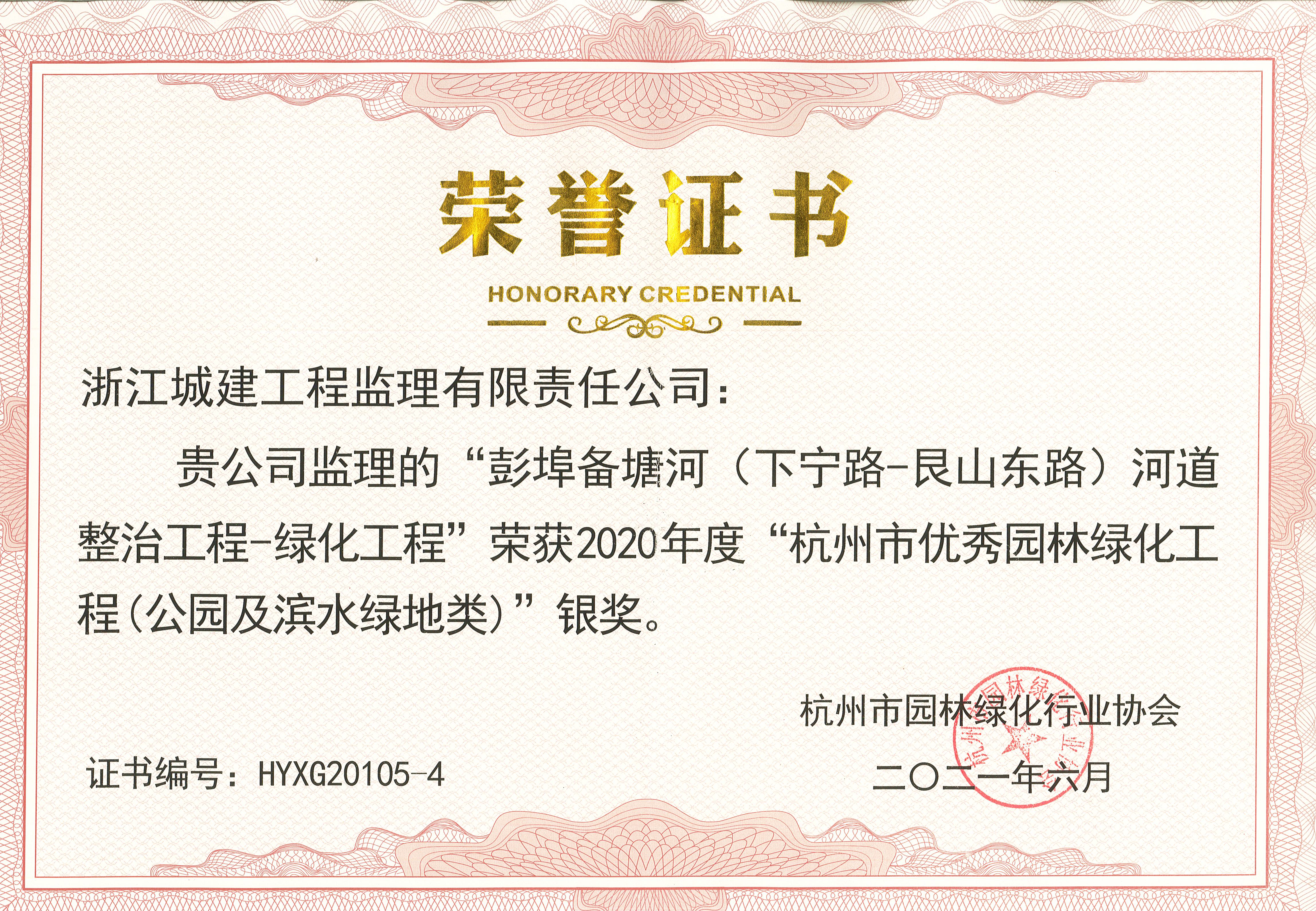 彭埠备塘河(下宁路艮山东路)河道整治工程绿化工程——荣获2020年度杭州市优秀园林绿化工程(公园及滨水绿地类)“银奖”