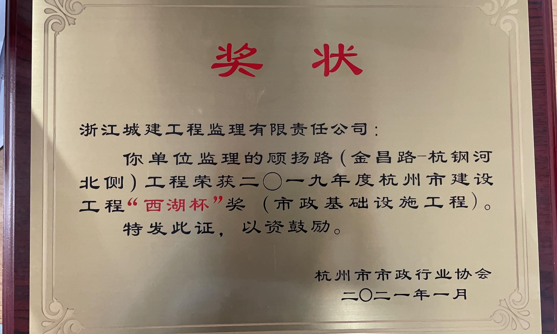 顾扬路(金昌路杭钢河北侧)工程——荣获2019年度杭州市建设工程西湖杯奖(市政基础设施工程)