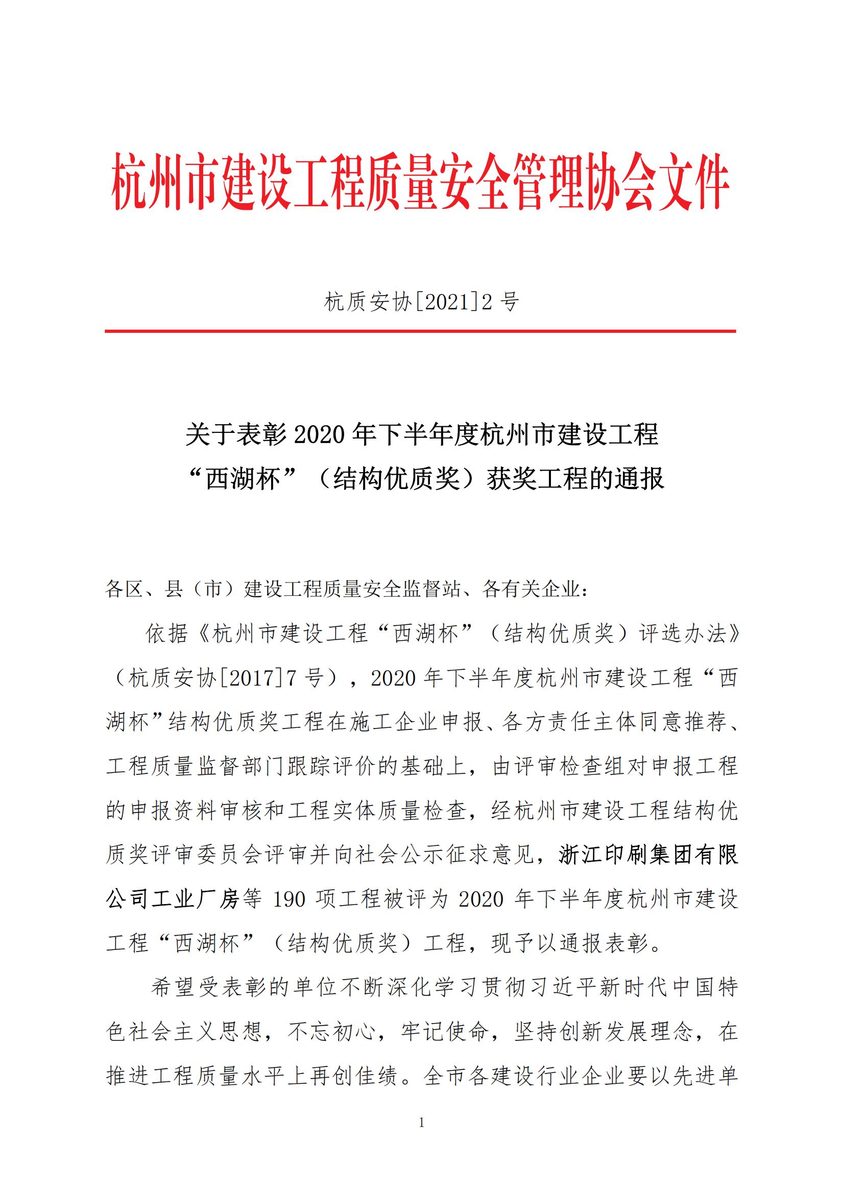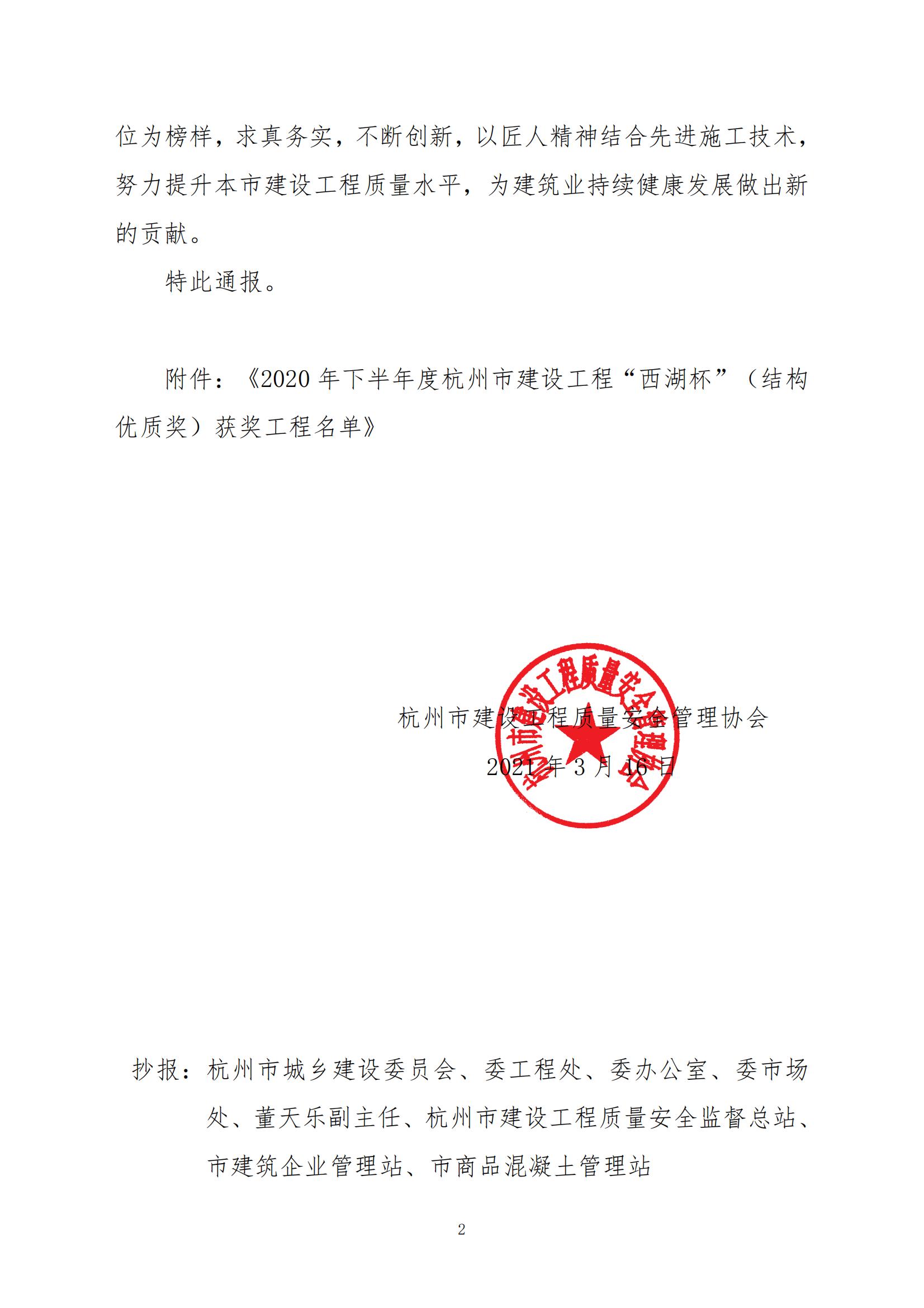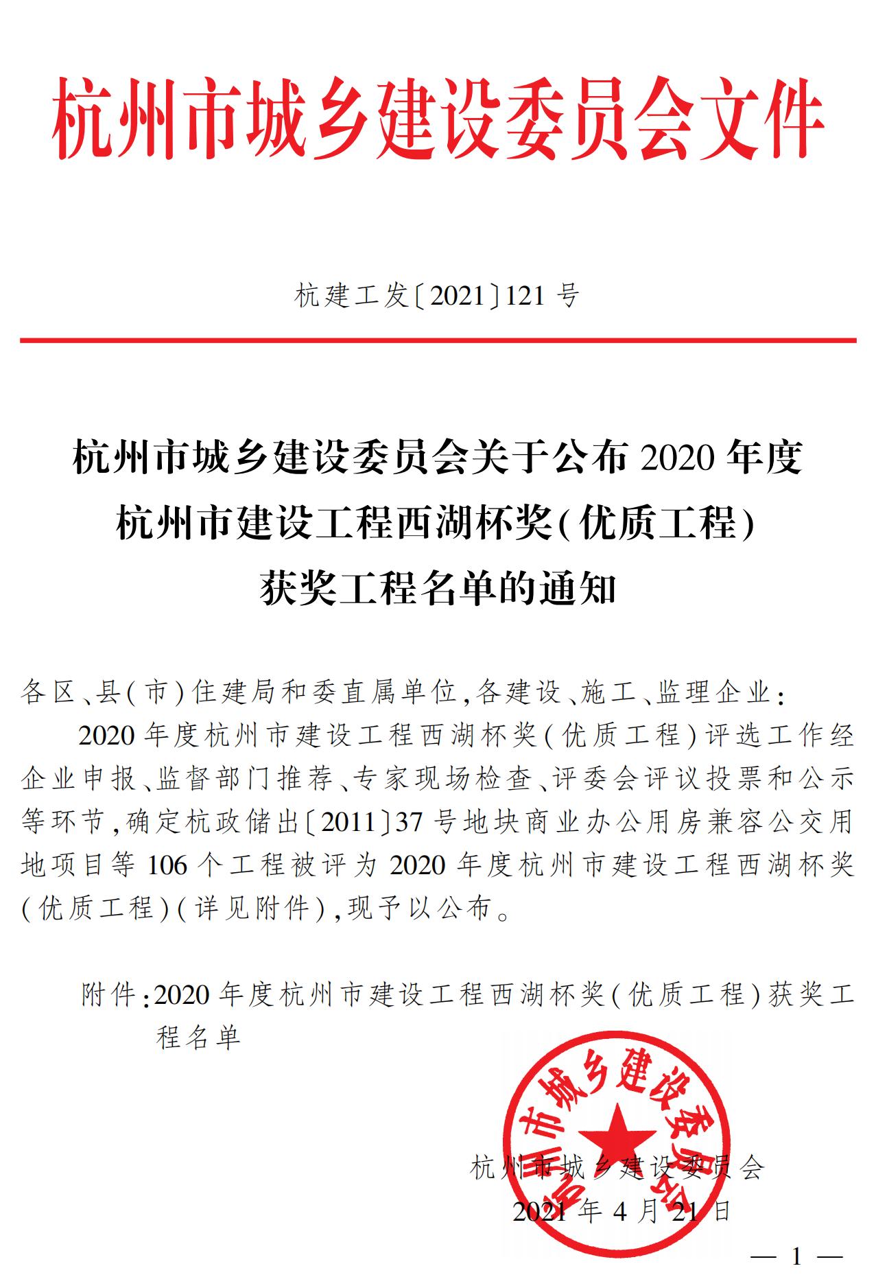 杭州地铁4号线二期工程勾庄车辆段施工标段(地铁)——荣获2020年下半年度杭州市建设工程  “西湖杯(结构优质奖