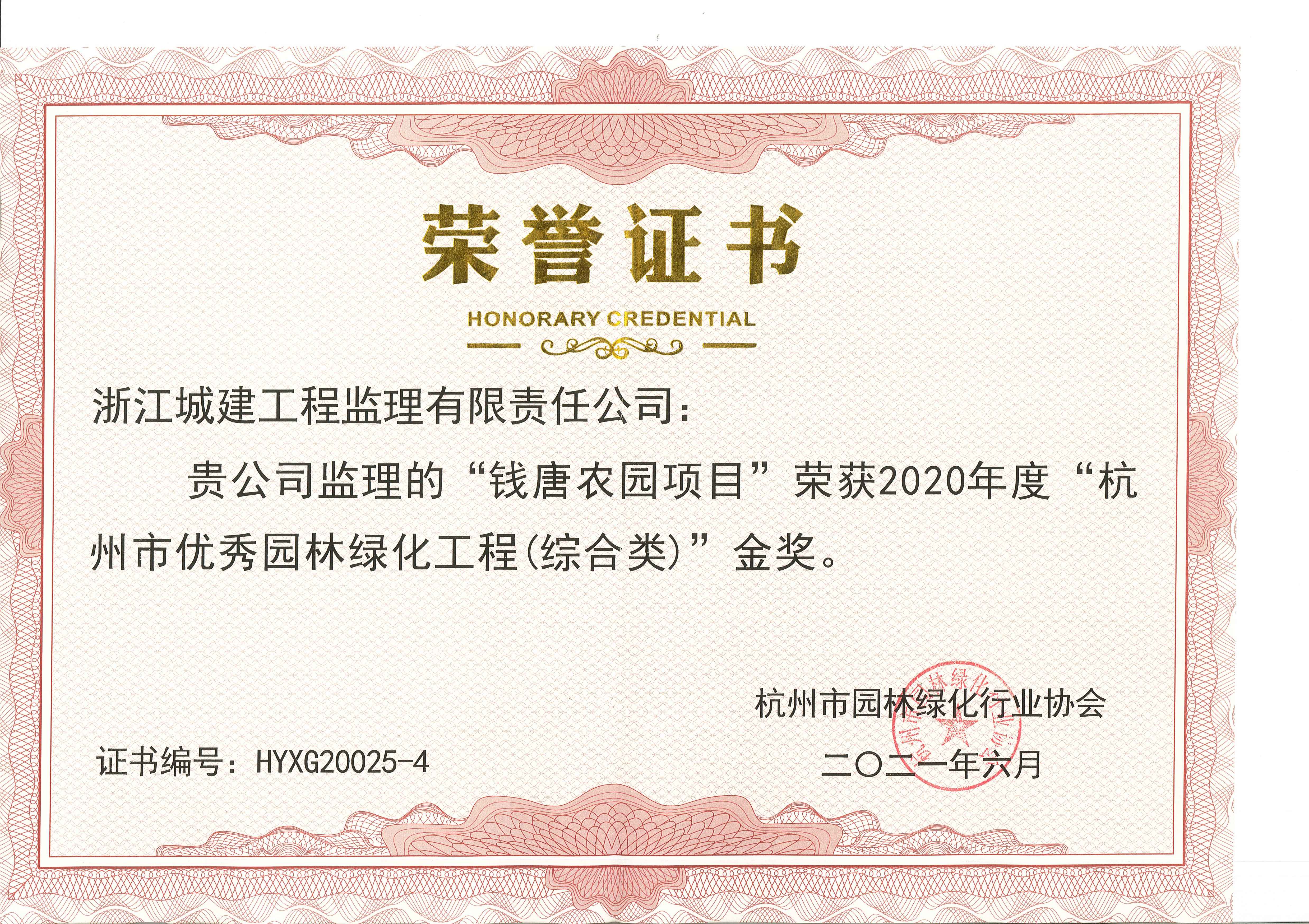 钱唐农园项目——荣获2020年度杭州市优秀园林绿地工程(综合类)“金奖”