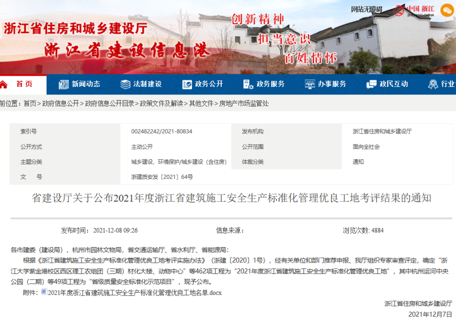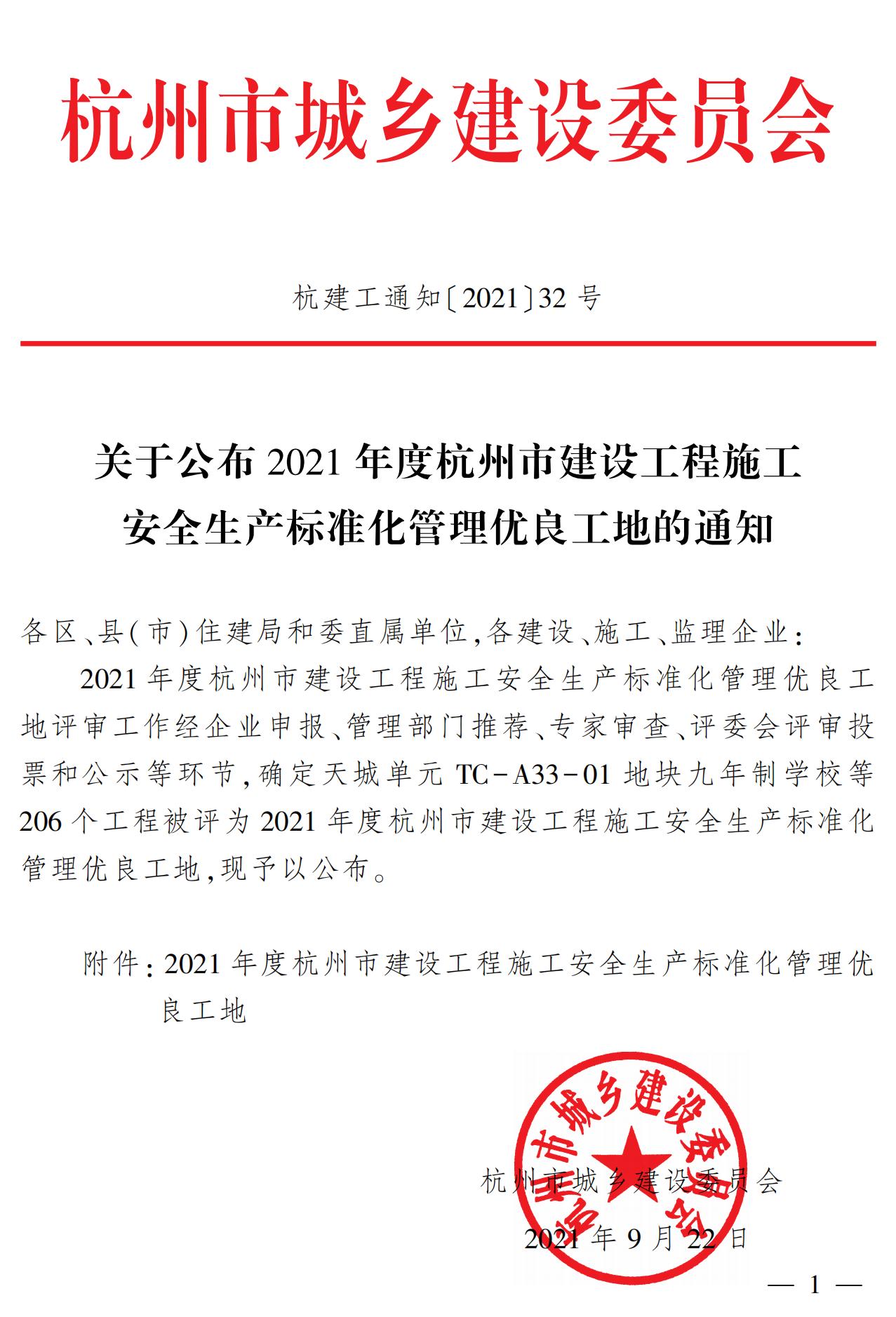 顾扬路(平炼路康桥路)工程——荣获2021年度浙江省建筑施工安全生产标准化管理优良工地