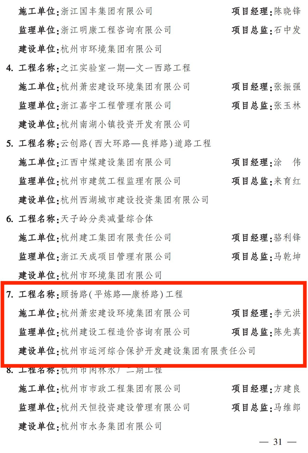 顾扬路(平炼路康桥路)工程(市政)——荣获2020年下半年度杭州市建设工程西湖杯(结构优质奖)