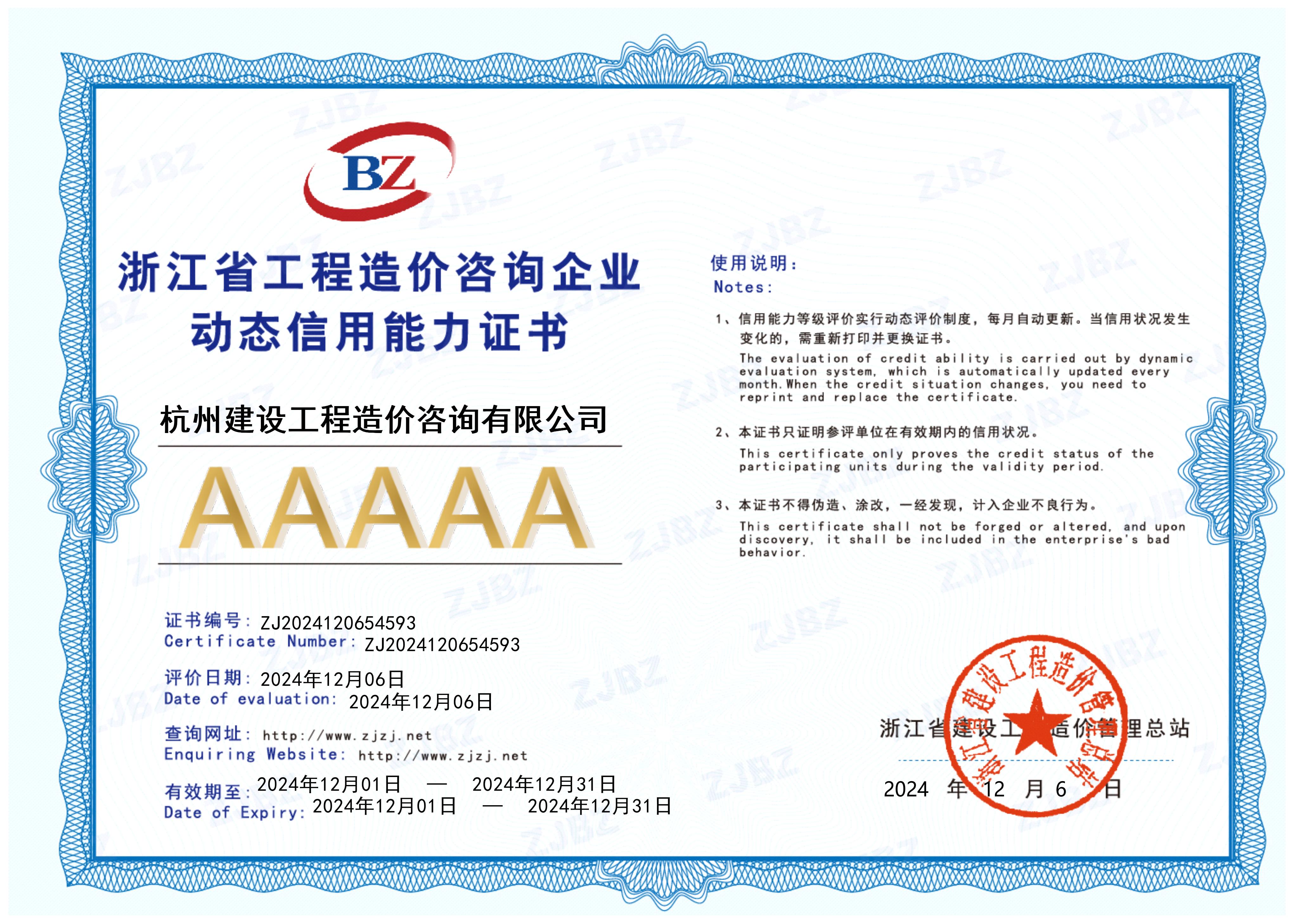 3.浙江省工程造价咨询企业动态信用能力AAAAA