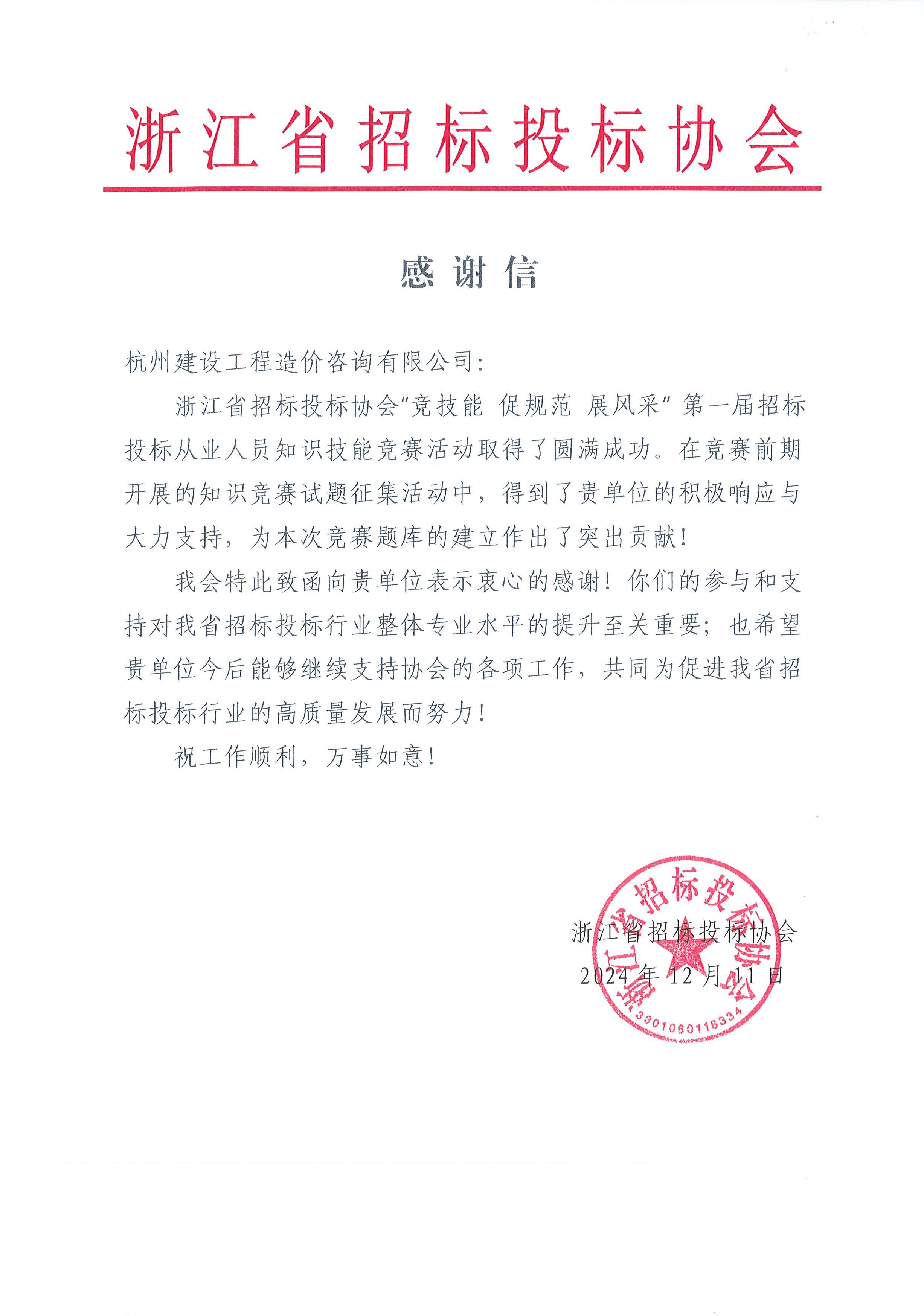 5.浙江省第一届招标投标从业人员知识技能竞赛试题征集活动感谢信