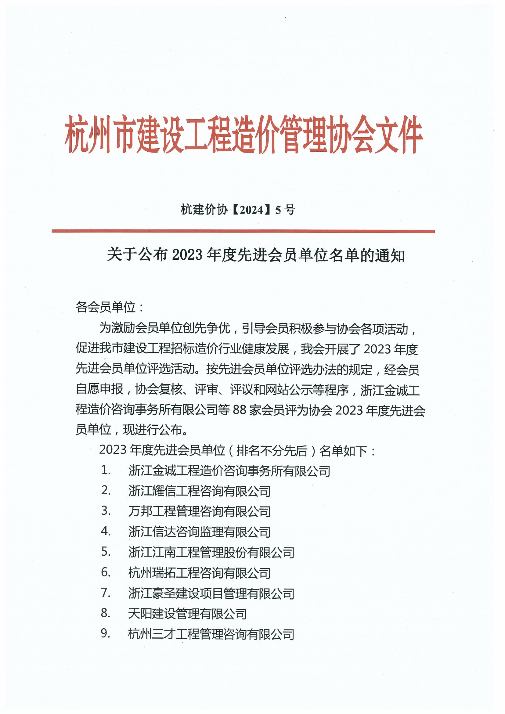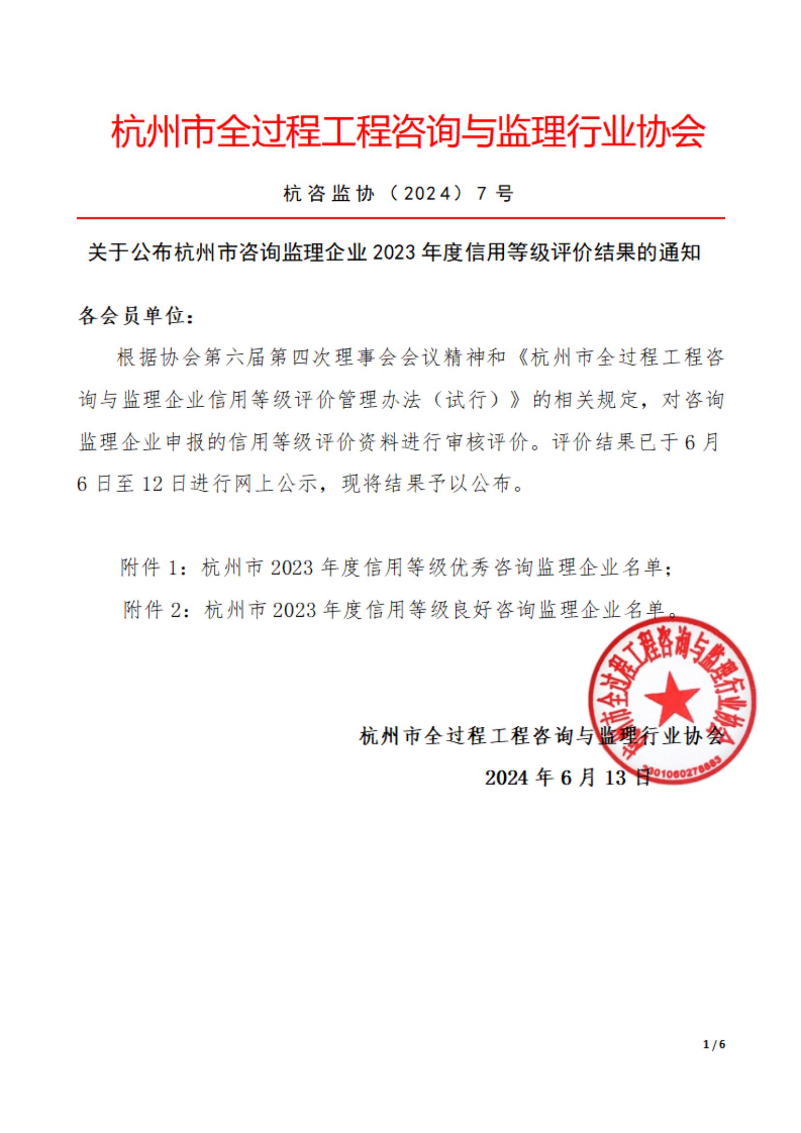 1.杭州市全过程工程咨询与监理行业2023年度优秀咨询监理企业