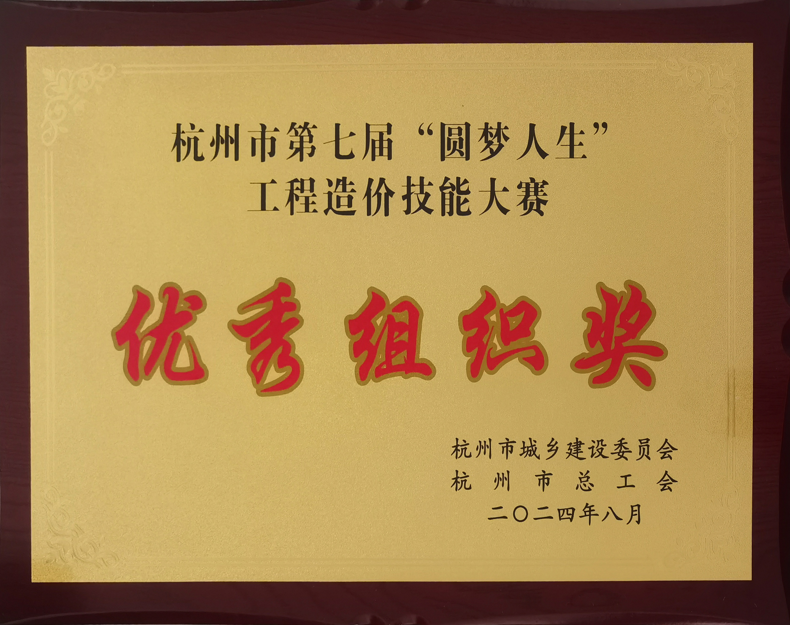 7.杭州市第七届“圆梦人生”工程造价技能大赛优秀组织奖