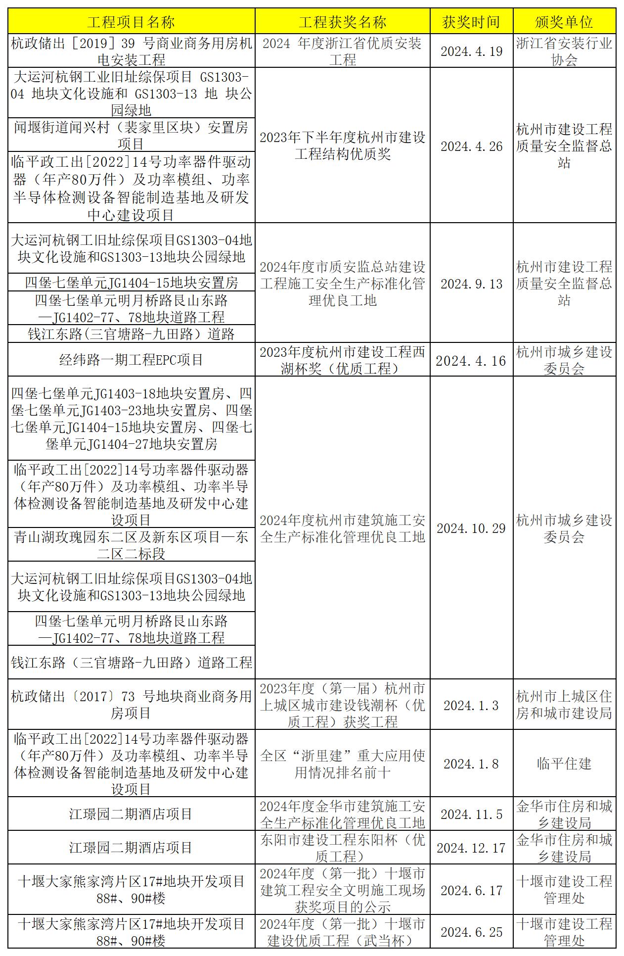 4.监理项目工程获奖情况