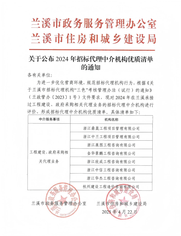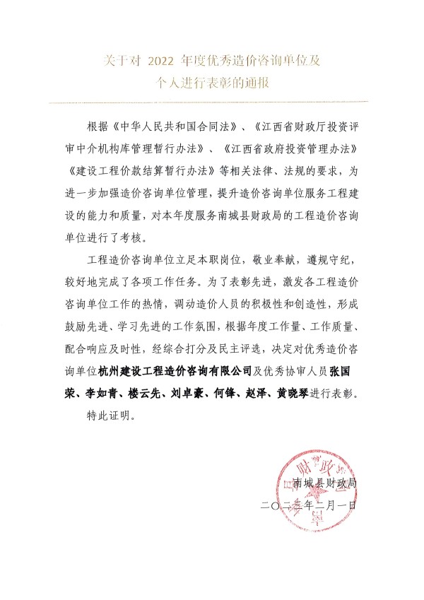2025-2027年度衢江区政府投资项目结算审核工作第一轮考核优秀单位