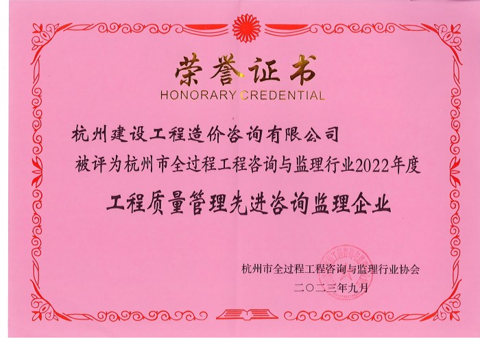 杭州市全过程工程咨询与监理行业2022年度工程质量管理先进咨询监理企业