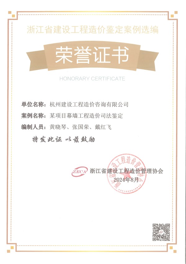 “某项目幕墙工程造价司法鉴定”入选浙江省建设工程造价鉴定案例选编