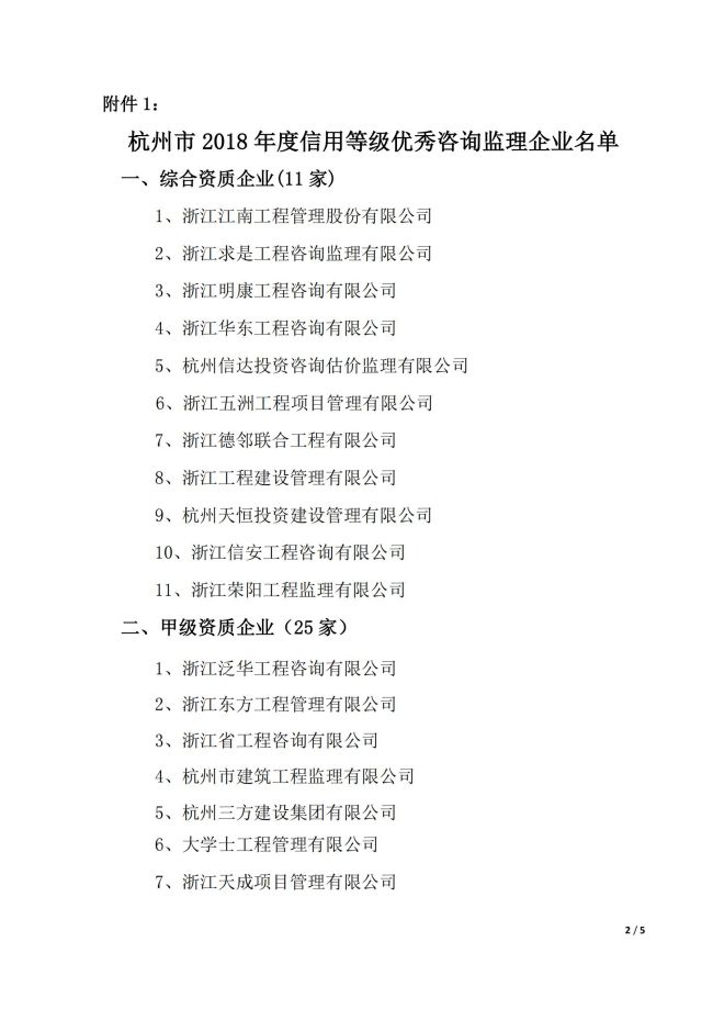 2018年度杭州市全过程工程咨询与监理行业优秀咨询监理企业